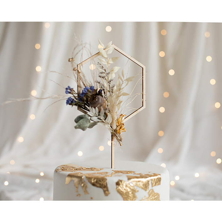Deiner Kreativität in Bezug auf den Cake Popper Hexagon sind keine Grenzen gesetzt. Von Trockenblumen, über Echtenblumen bis hin zu schönen Schleifen. Gestalte dir deinen Cake Topper immer nach deinen Wünschen und deinem Anlass.