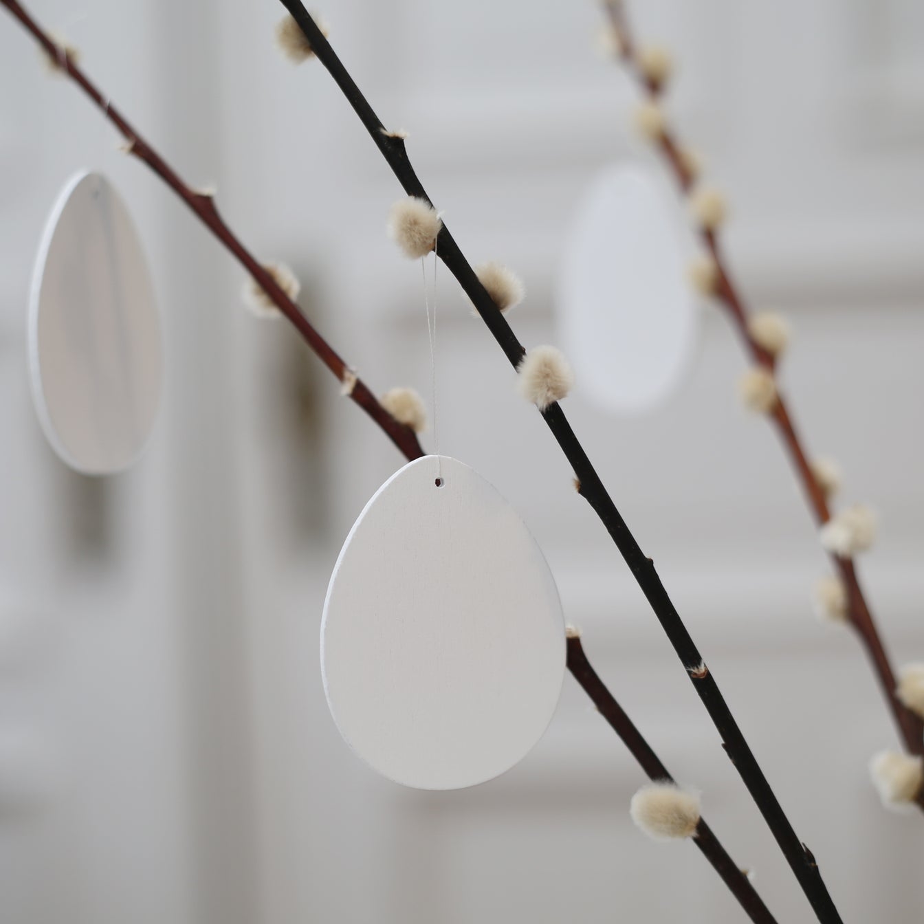 Eine süße Osterdekoration sind diese Holanhänger Eier im 8er Set. Ein schlichtes, zeitloses aber dennoch verspieltes Design. Die lasergecutteten Holzänhänger können auch noch beschrieben oder bemalt werden. Mit einem Kreidestift kann man sie auch mehrfach bemalen & einfach abspülen. Ausserdem ist in jedem der kleinen Anhänger ein Loch eingefräst, sodass ein beliebiges Band durchgezogen werden kann. Ein dünnes weißes Garn findest Du in jeder Verpackung zu den Anhängern dazu, sodass Du mit dem Aufhängen sofort loslegen kannst. Eine wundervolle Osterdekoration, welche Du ganz nach Belieben individuell dekorieren kannst.