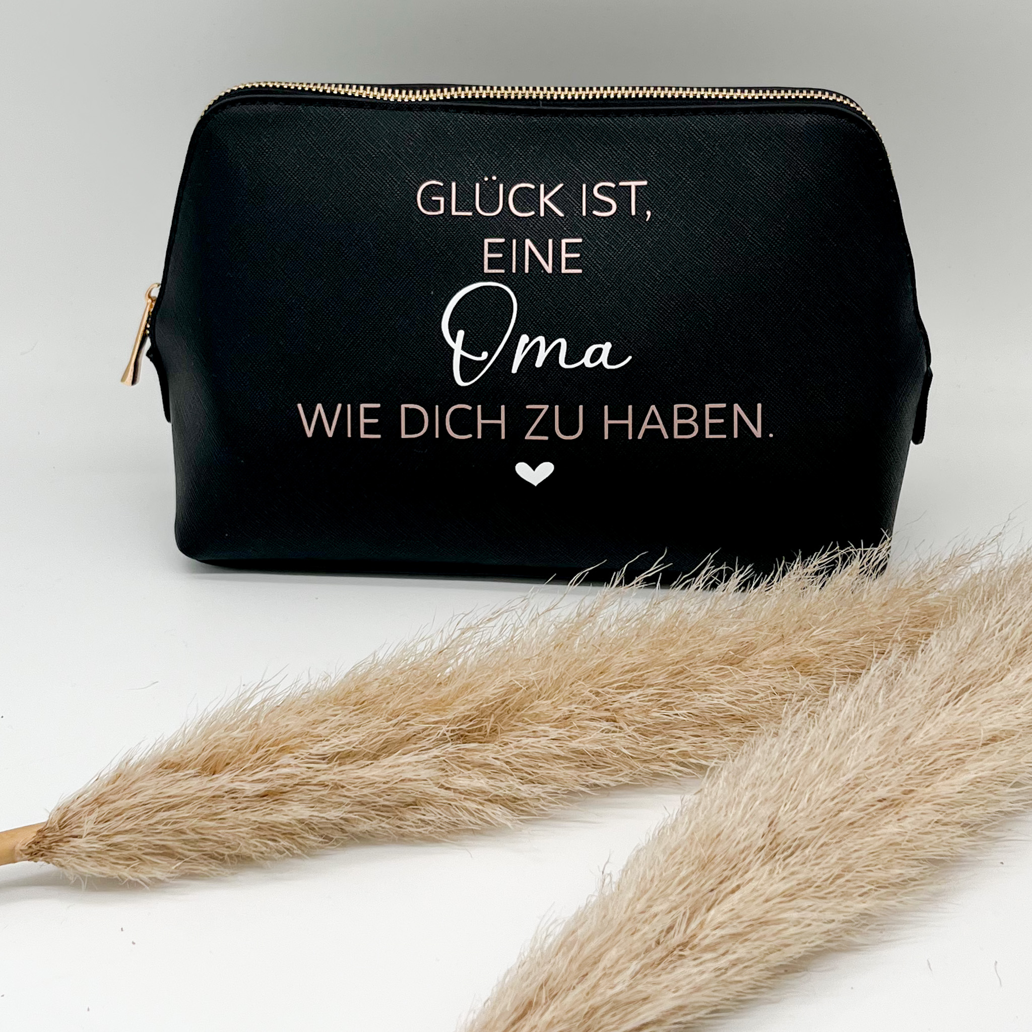 Das perfekte Geschenk für deine Oma. Die Kosmetiktasche wird mit dem Aufdruck: Glück ist eine Oma wie dich zu haben in Handarbeit personalisiert. Wenn du auf der Suche nach einem süßen Geschenk für deine Oma bist, ist dass das perfekte Geschenk. Du erhältst sie in vielen unterschiedlichen Farben und kannst auch bei Größe, sowie der Schriftfarbe individuell entscheiden. Somit erhält du dein absolutes Einzelstück für deine Tochter. Im Titelbild siehst du die große Tasche.