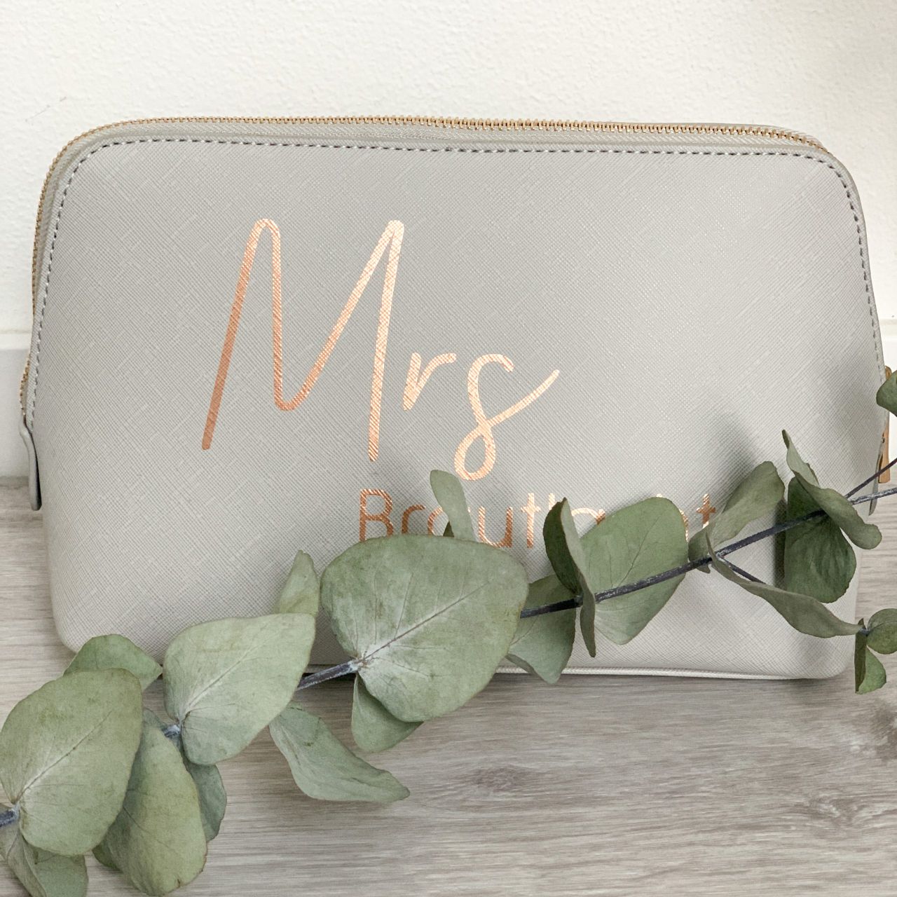 Diese personalisierte Kosmetiktasche zu deiner Hochzeit oder als Geschenk für die zukünftige Braut oder dem Bräutigam beim Getting Ready. Sie wird personalisiert mit dem Wort Mrs oder Mr und deinem zukünftigen Nachnamen. Eine tolle Möglichkeit das zukünftige Brautpaar bereits vor der Hochzeit mit diesem Geschenk zu überraschen.