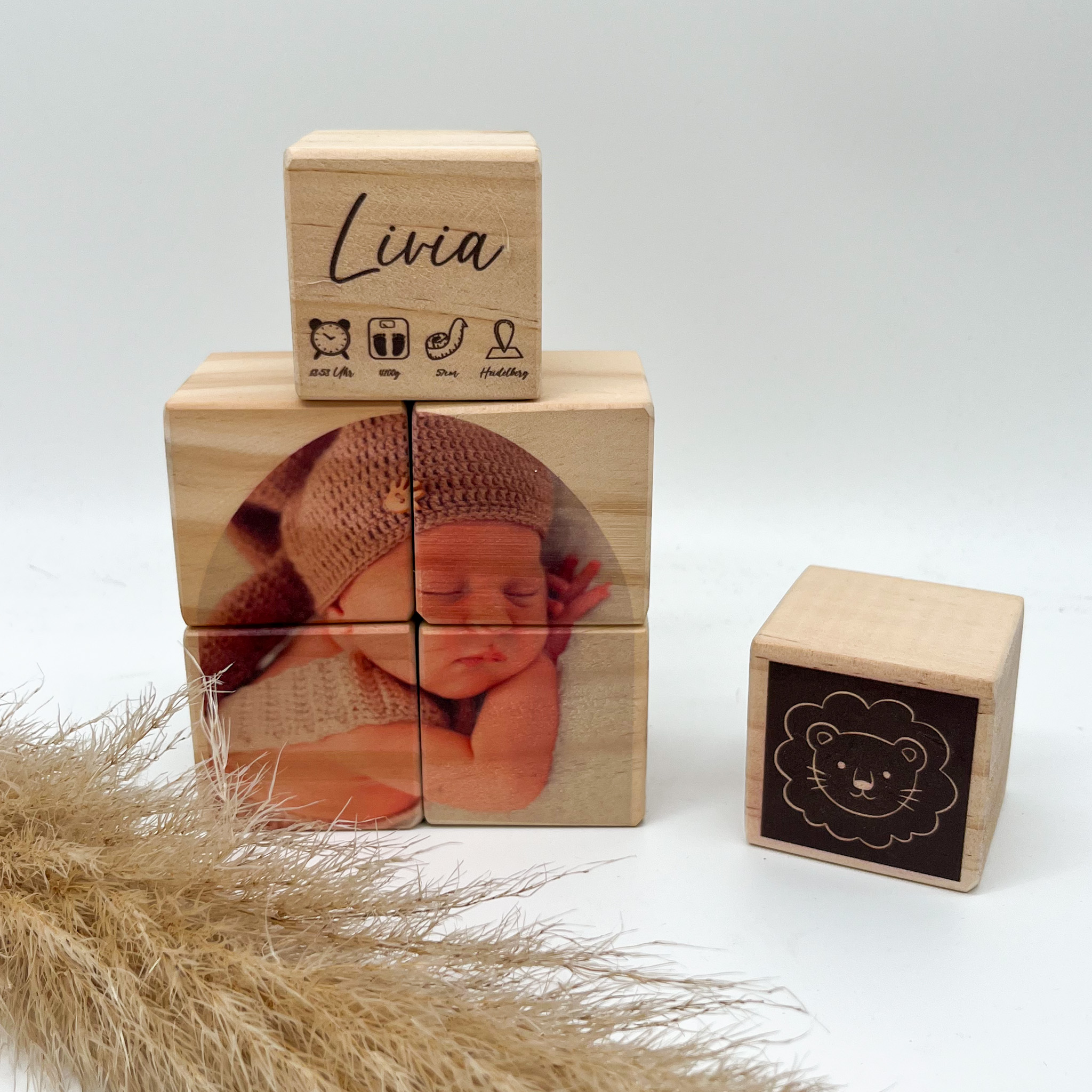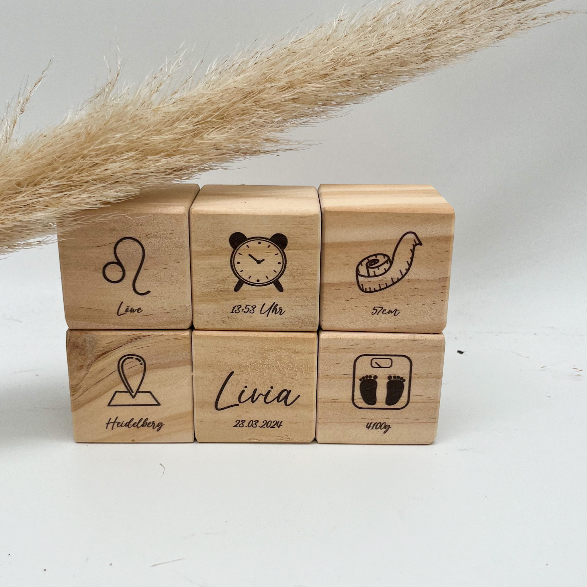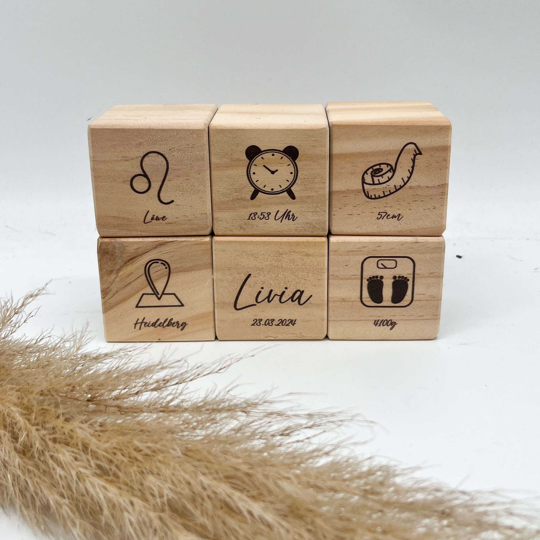 Personalisierte Holzwürfel – Geburtsgeschenk