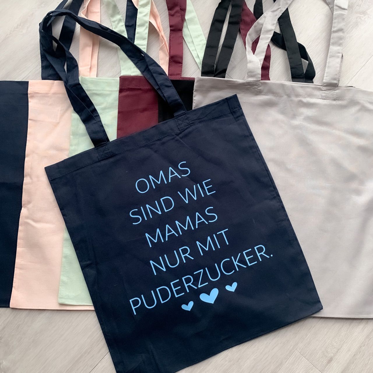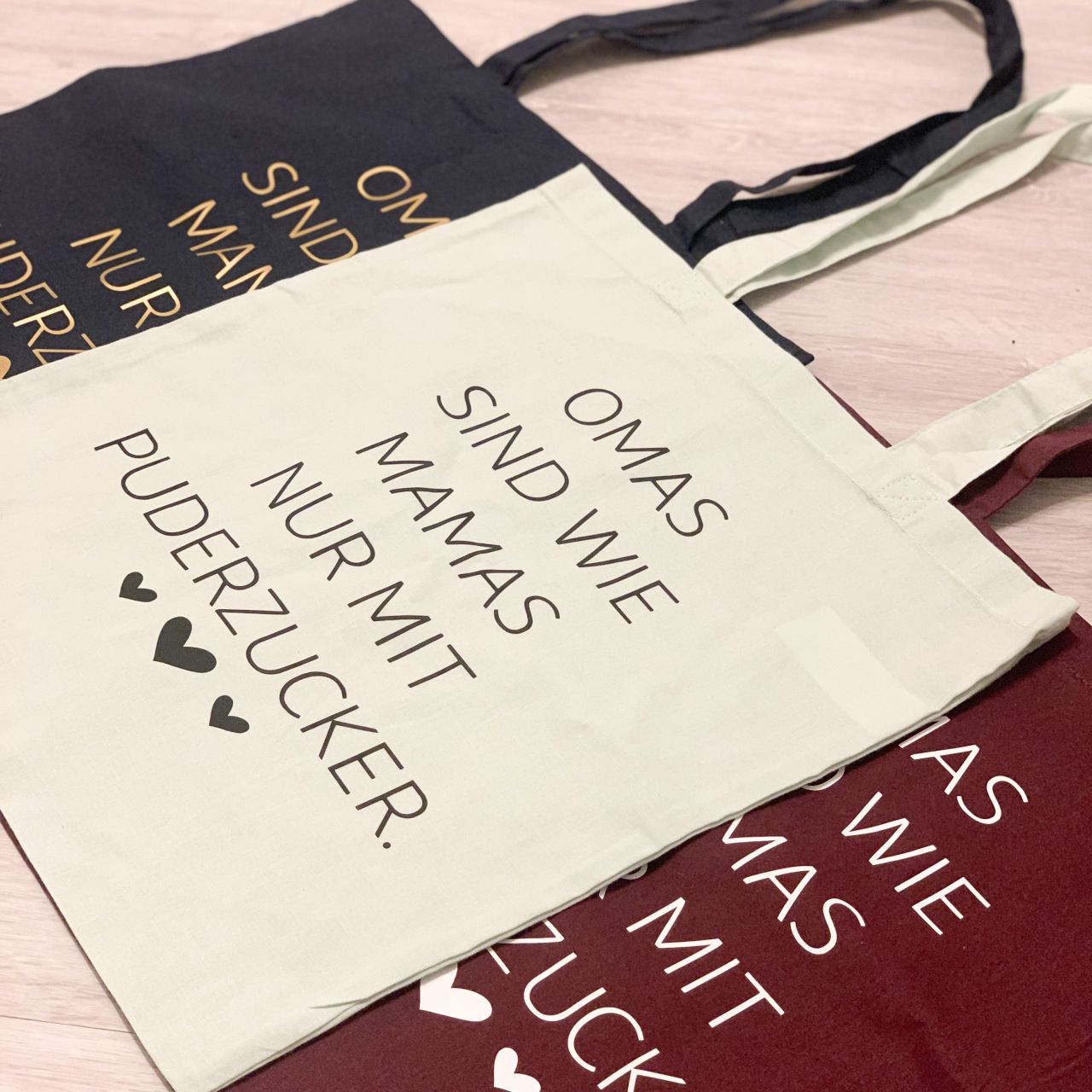 Stofftasche mit Omas sind wie Mamas nur mit Puderzucker. Das perfekte Geschenk für die Oma, wenn man auf der Suche nach einer Kleinigkeit zum Verschenken ist.
