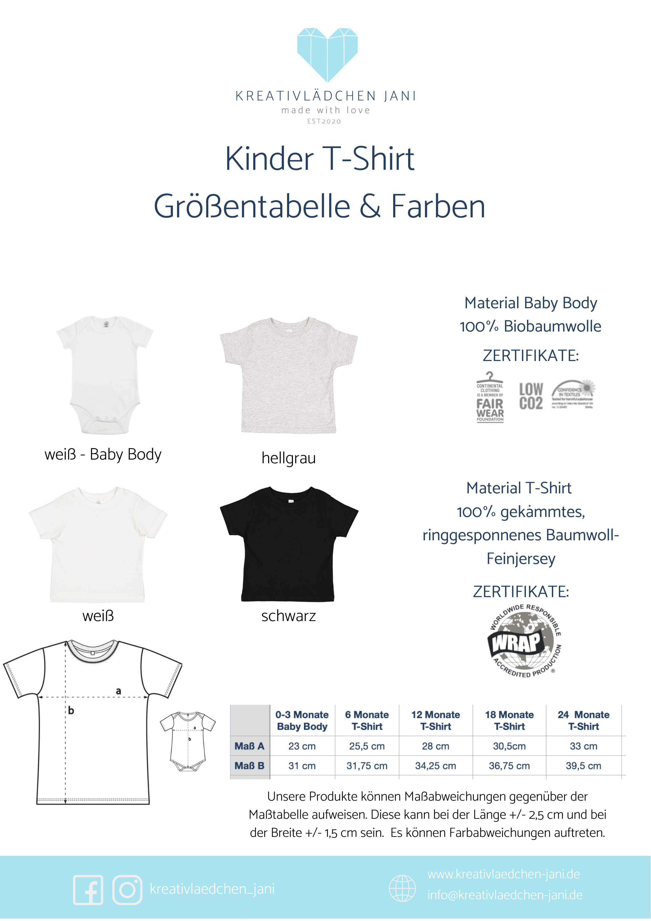 - Kinder: 100% Baumwolle / Grammatur 153 g/m²