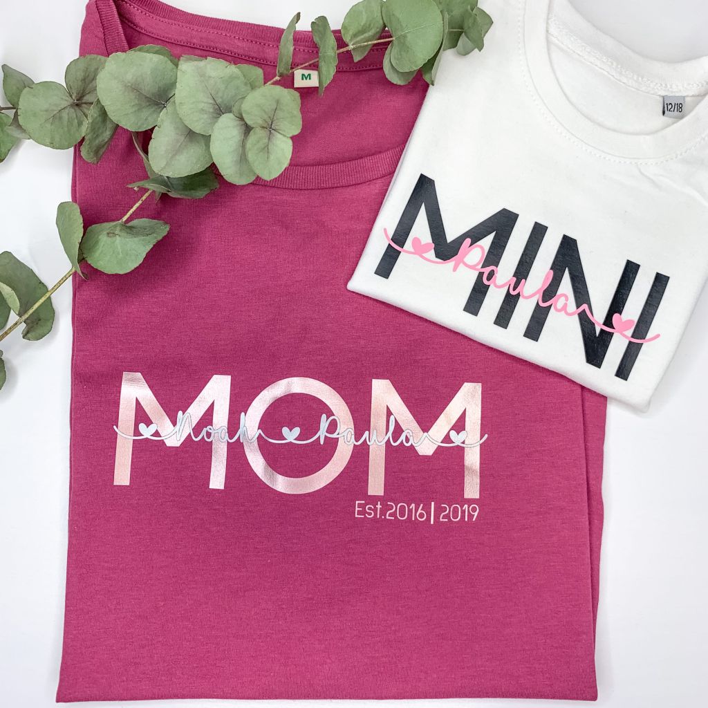 Wir lieben Partnerlook! Es ist doch ein tolle Idee mit Mama im Partnerlook durch den Alltag zu gehen. Das T-Shirt ist ein absolutes Einzelstück, denn es trägt deinen Namen.