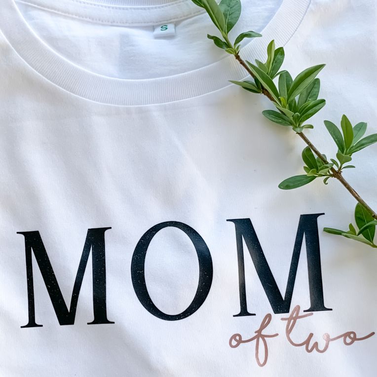 Wir personalisieren dir ein Mom Shirt mit der Anzahl deiner Kinder. Der Print ist groß über die gesamte Brust.