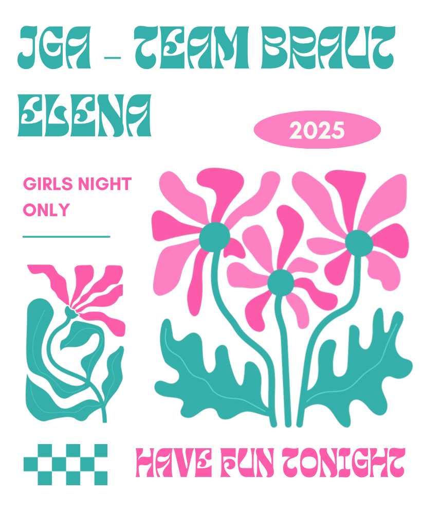 Viele weitere unvergessliche Motiv für deinen JGA findest du bei uns im Shop. Mit schlichtem I Said yes oder tollem schlichtem Design. Das dazugehörige Retro Braut SHIRT findest du ebenfalls in unserem Shop. Schau dich gerne um. Wenn das passende Motiv nicht dabei ist, schreibe uns gerne eine Nachricht. Wir erstellen dir auch deinen ganz individuellen Look für deinen JGA.
