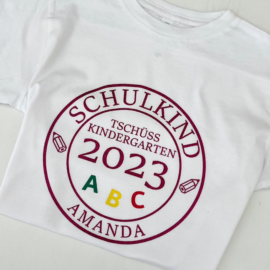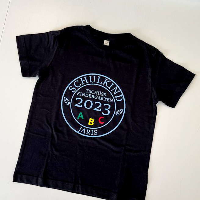 Die letzten Tage vom Kindergarten stehen an und du bist noch auf der Suche nach einem tollen T-Shirt. Das T-Shirt im Kreis Design wird mit deinem Namen, der Jahreszahl personalosiert. So sieht jeder das du ein Schulkind bist.