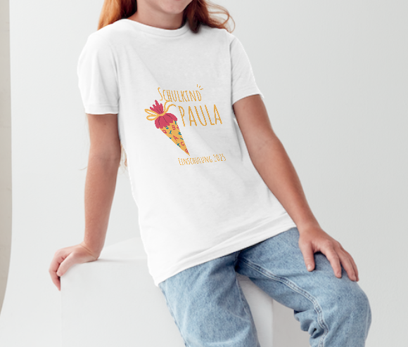 Der erste Schultag ist ein besonderer Moment, den Kinder und Eltern nie vergessen. Mit unserem personalisierten Schulkind-T-Shirt wird dieser Tag noch einzigartiger. Der auffällige Aufdruck mit einer liebevoll gestalteten Schultüte, dem Namen des Kindes und dem Wort „Schulkind“ ist nicht nur ein Hingucker, sondern ein echtes Erinnerungsstück, das auch Jahre später noch ein Lächeln ins Gesicht zaubert.