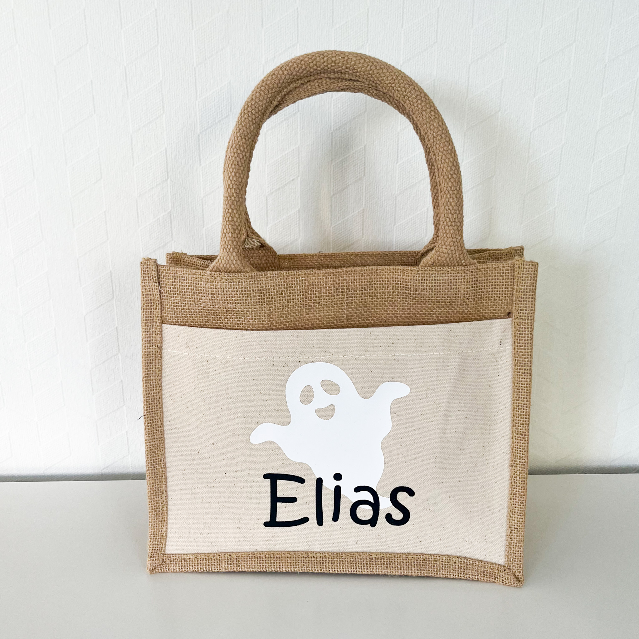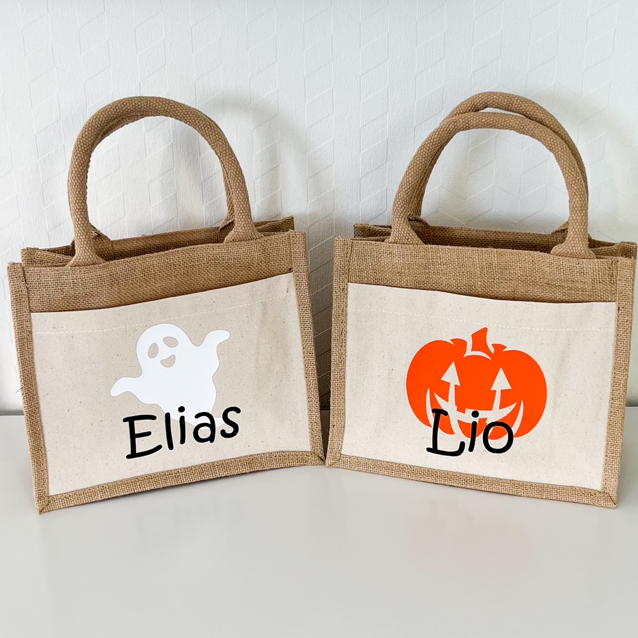Halloween-Jutebeutel bestehen aus hochwertigem Jutematerial und sind robust und langlebig. Die Tasche ist ideal für kleine Kinderhände und trägt sich einfach. Das süße Kürbnis- oder Geistermuster ist wunderschön und verleiht der Tasche eine besondere Note. Auf der Tasche ist auch der Name des Kindes aufgedruckt, was sie noch persönlicher macht. Die Tasche ist ideal für Eltern, die Plastiktüten nicht mehr mögen und nach einer nachhaltigeren Alternative suchen.